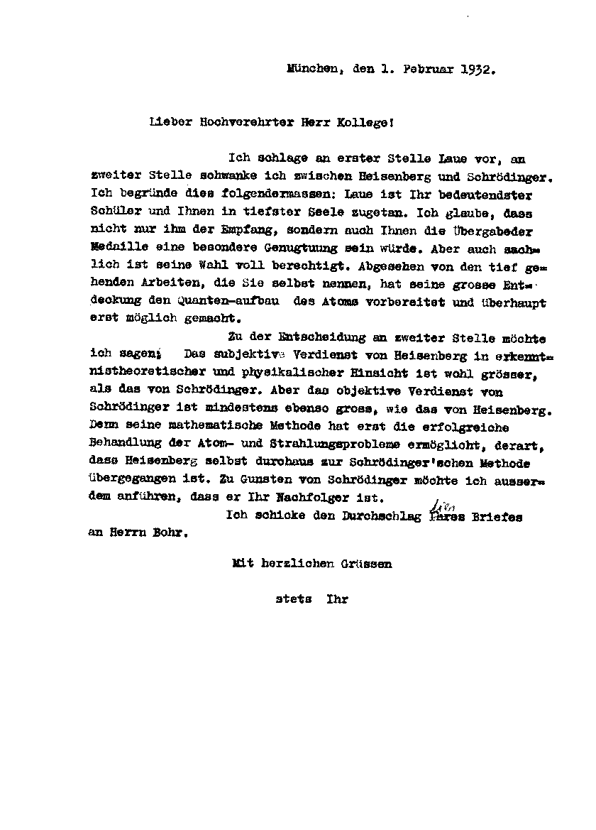 AS schlägt an erster Stelle Laue und an zweiter Heisenberg sowie