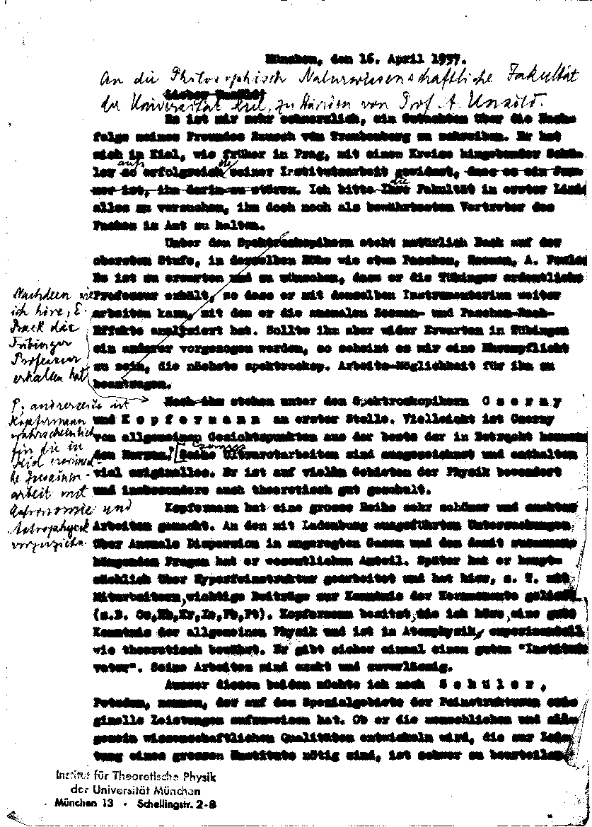 Arnold Sommerfeld an Albrecht Unsöld, 16. April 1937