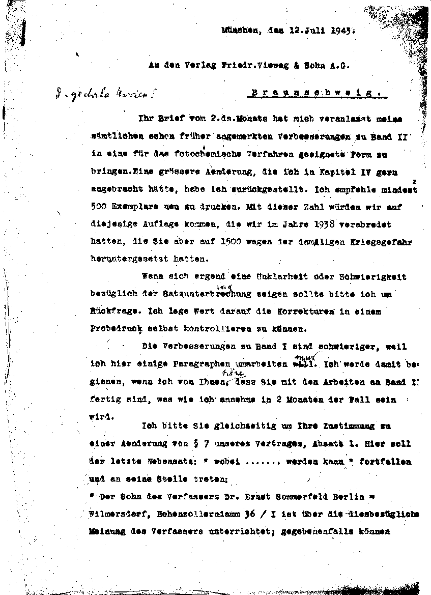 Arnold Sommerfeld an Vieweg, 12. Juli 1943
