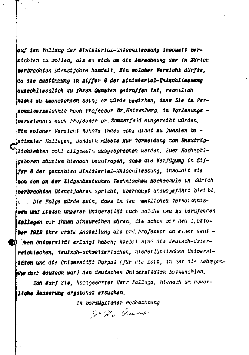 Verzichts auf Anrechnung der Züricher Professorenzeit.