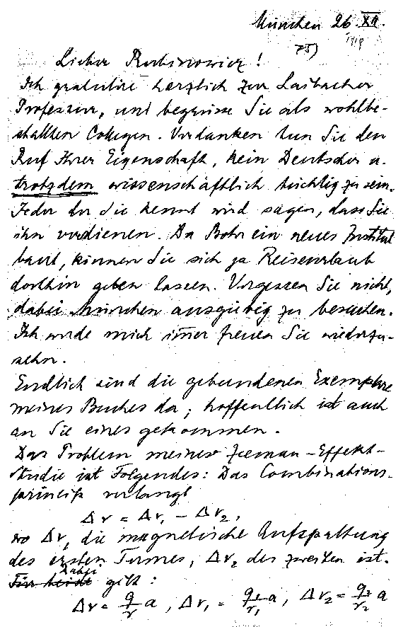 Arnold Sommerfeld an Adalbert Rubinowicz, 26. Dezember 1919