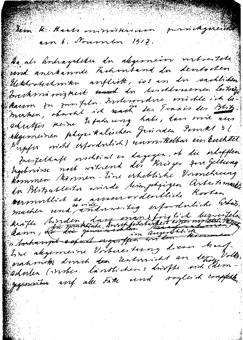 Elektrotechniker«, hält aber Durchführung während des Krieges für