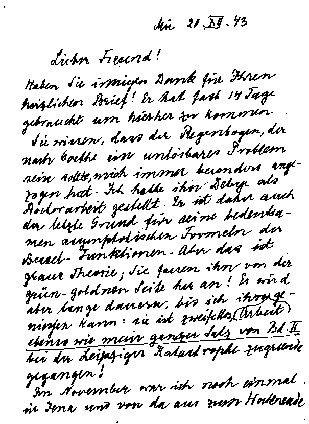 Arnold Sommerfeld an Eberhard Buchwald, 20. Dezember 1943