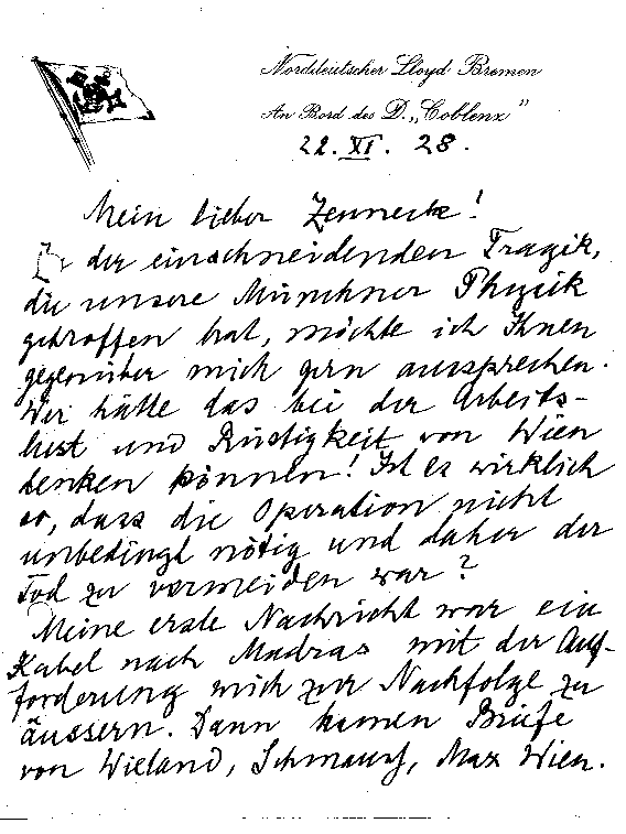 Arnold Sommerfeld an Jonathan Zenneck, 22. November 1928