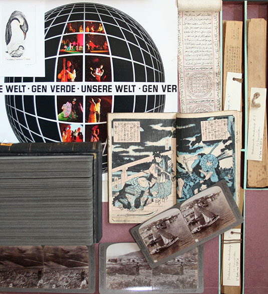 Palmblatthandschriften aus Indien, eine armenische Handschriftenrolle, der Talmud der Überlebenden, Koranhandschriften, das Septembertestament Martin Luthers mit den Marginalien von Johannes Eck, das kleinste Buch der Welt, Seidenpapierdrucke zur Pekinger Sternwarte des 17. Jahrhunderts, aber auch Exlibris, Schallplatten, frühe Mangas aus Japan, historische Kinderbücher, Fotoalben, Flugblätter, Kupferstiche, Grafiken, Archivalien… Die Universitätsbibliothek und ihre Medienlandschaft ist bunt – mehr als nur der Bücherberg an der Ludwigstraße.