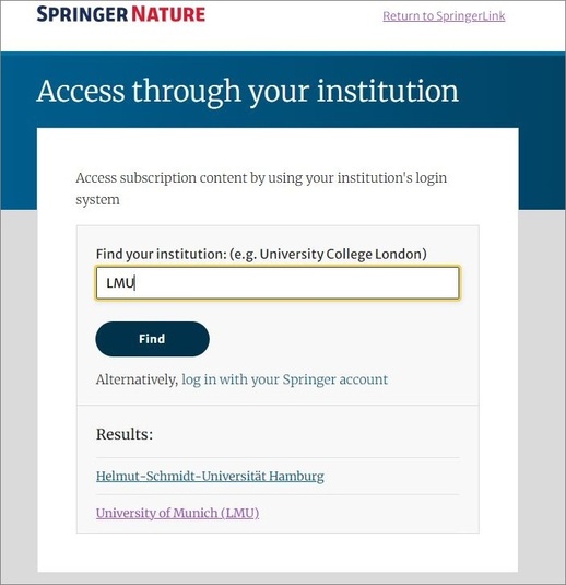 Die von der Universitätsbibliothek lizenzierten E-Books, E-Journals und Fachdatenbanken sind prinzipiell über den E-Medien-Login zugänglich. Als Alternative steht Ihnen an der LMU auch der Shibboleth-Login zur Verfügung.